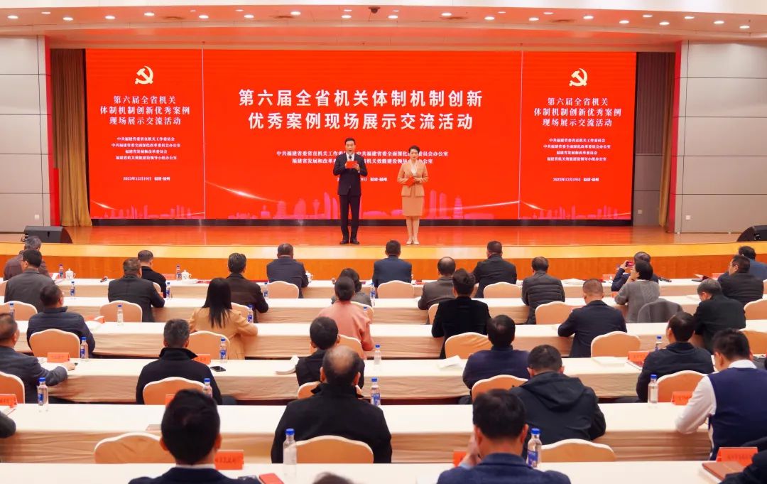 12月19日,第六届全省机关体制机制创新优秀案例展示交流活动在福州举办。活动旨在深入贯彻落实习近平总书记为福建擘画的建设“机制活、产业优、百姓富、生态美”新福建的重要要求,巩固深化学习贯彻习近平新时代中国特色社会主义思想主题教育成果,进一步推动机关体制机制创新和创新成果转化运用,为我省经济社会和党的建设高质量发展贡献机关力量。