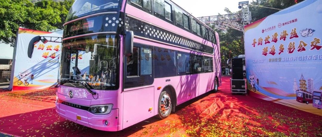 粉嫩的“双层观光巴士”,拥有全景天窗、KTV影音系统给、氛围灯及车身灯带等多种豪华配置。一层顶部定制泉州特色景点老君岩、东西塔设计,二层十个窗户玻璃刻有十幅世遗景点图;让市民的出行更加个性化。双层巴士将用于旅游观光线路,不同线路将设有不同的茶点和文艺表演,为游客提供一次全面、深入的泉州旅游体验。乘客可以直观地感受泉州的山海美景、古今交融的文化氛围以及丰富的非遗文化。新型车型“双层巴士”及“铛铛车”落地泉州,是泉州交发集团探索“文旅+公交”的一次全新尝试,也是推动文旅高质量发展的一项有力举措,将进一步彰显泉州城市特色、塑造城市形象,有效提升泉州观光旅游品质,“多元文化,多彩交通”的泉州公交品牌也将更加深入人心。