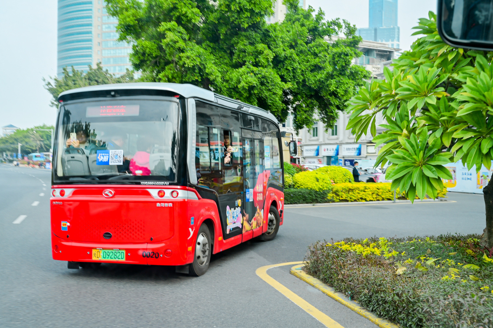海峡导报记者在启动仪式现场看到,换上新装的“mini公交车”小巧可爱,车身贴上了“CITY BUS·解码多彩思明”的字样,整体色彩十分明亮、醒目,展示了线路沿途主要看点的实景图,让乘客一目了然。其中,100路采用约巴车型,全车以红色为主色调,车厢内饰看板附有红色旧址的介绍;B2路是绿色旅游大巴,攀山越海安全性更佳;29路为城市公交车型,结合环岛路沿线的景观特色,更添一抹动态的美感。