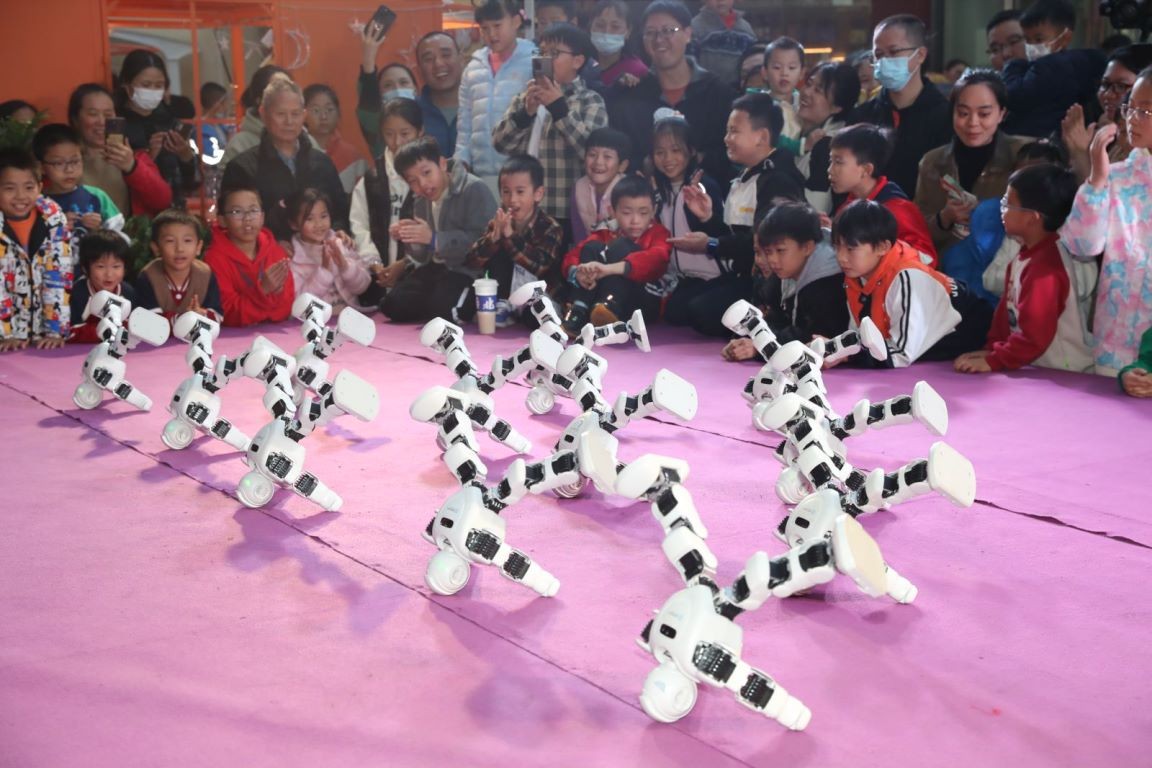 在夜市舞台中央,来自东西方的两个“超级英雄”也降临现场,“孙悟空”和“大黄蜂”空降后浦社区,和社区居民热情互动,引得大家争相打卡拍照;另外,人型机器人-阿尔法和无人机编队也为夜市献上欢快的舞蹈表演和编队飞行show;现场还有科学牛魔王为居民朋友带来趣味科学秀表演,“火云神掌”,“气压半球”科学表演让现场观众大饱眼福;观看完表演之后可以到一旁的科普区进行科普闯关,用神奇的液氮感受“吞云吐雾”,用泡泡水挑战做出泡泡长龙,让大家不仅能填饱肚子,还能增长知识,感受科学的魅力。