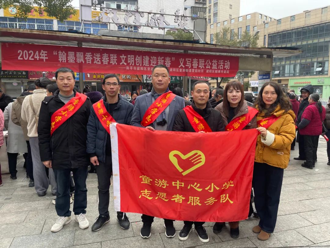 参加本次“翰墨飘香送春联 文明创建迎新春”义写春联活动的人员有童游中心小学书法组教师、书法嘉宾、童游中心小学“小小书法家”。