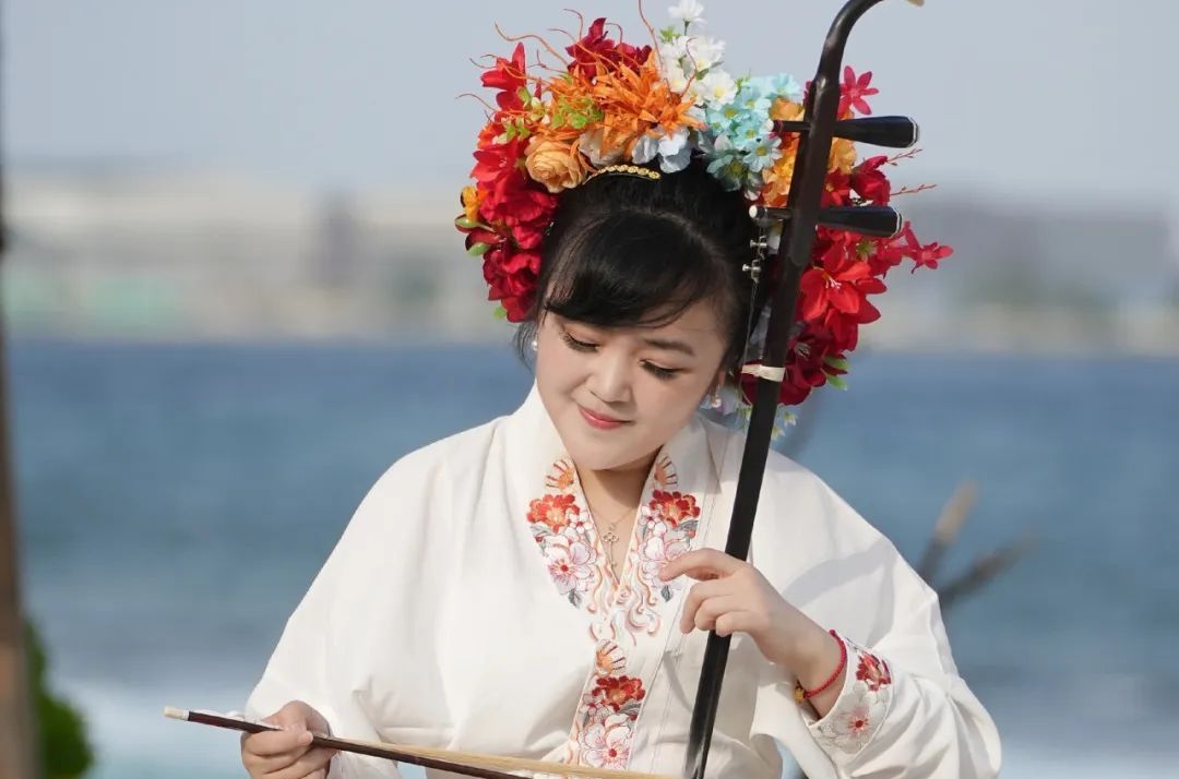 当地时间2月15日下午5点,一支支年味浓郁的乐曲在马尔代夫首都马累人工沙滩奏响,来自福建省歌舞剧院民乐团的6名演奏家以福建蟳埔簪花造型惊艳亮相,为观众呈现一场沉浸式国潮快闪秀。