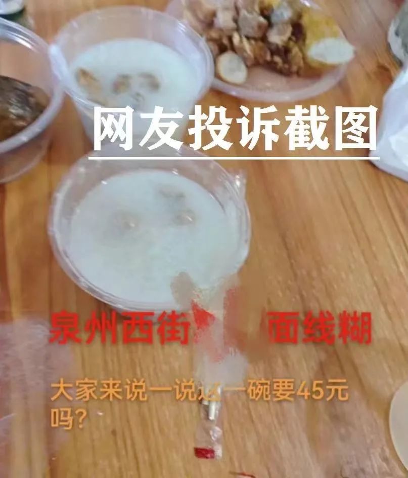 2月16日,有网友在某社交平台上投诉,称此前在西街某面线糊店点了10碗面线糊,每碗收费45元;另有三盘拼盘,每盘88元,三个粽子,每个15元,合计要收费740元,最后经沟通打折实际付款580元。当天晚上,泉州市市场监管综合执法支队执法二大队联合鲤中市监所,迅速到达现场进行核查。
