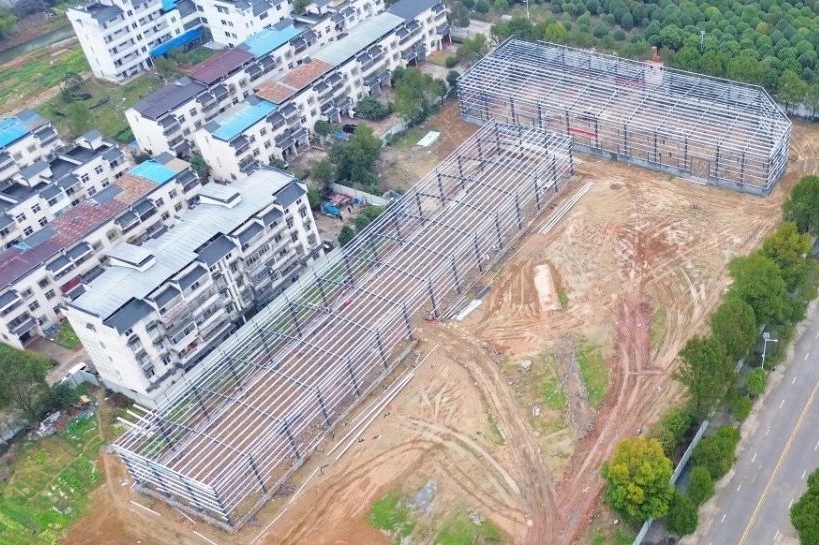 3月4日,在泰宁县朱口镇县级种子加工共享平台的项目建设现场,工人们正在进行厂房墙面砌砖、钢架结构搭建施工,全力拉满“进度条”,按下建设“快进键”。