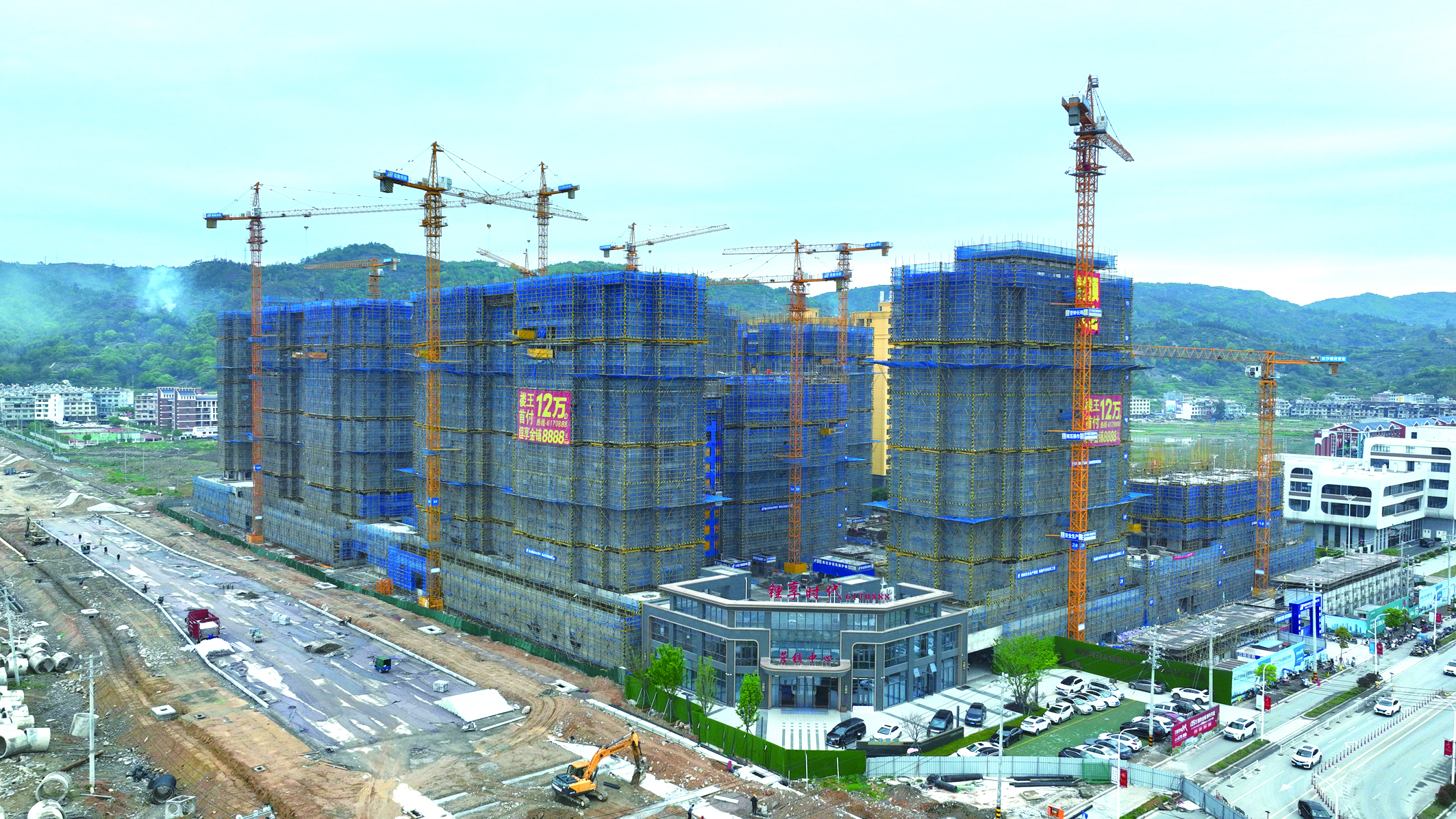 日前,记者走进福鼎市锂电公馆项目施工现场,只见一幢幢单体建筑拔地而起。工地上塔吊林立、机声隆隆,混凝土搅拌机等大型设备运转不停,各项施工作业如火如荼地进行。