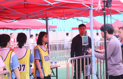 除游泳项目在游泳馆进行外,其他考试项目都将在海峡奥体中心主体育场进行。实景演练现场,考生进入对应考点后,通过AI人脸识别预录入考生信息后再进行考试,设备将自动记录考生成绩。