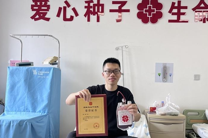 2001年出生的黄磊阳光开朗,从小便对“无偿献血”怀有极大热忱。“小时候和妈妈一起出门,看到献血车,我就觉得它造型特别,就像一辆玩具车。”他说,“长大后我才懂得那辆‘玩具车’承载着庄严的使命。”