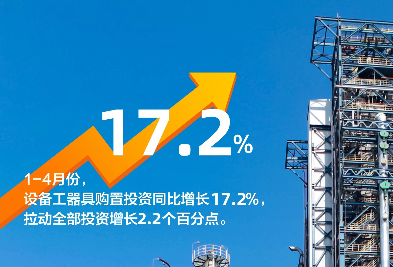 国家统计局数据显示,1-4月份,设备工器具购置投资同比增长17.2%,拉动全部投资增长2.2个百分点。