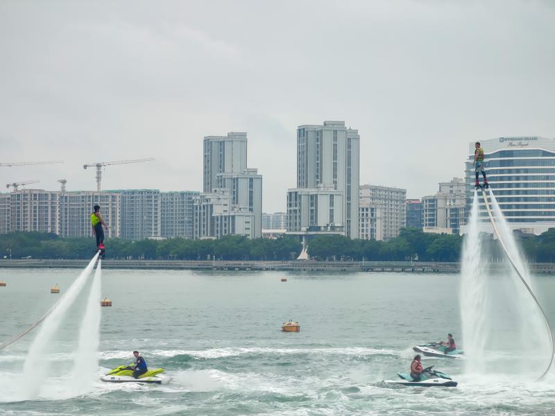 在五缘湾游艇港水上区域,与会嘉宾共同观看了水上飞龙、摩托艇等精彩的水上表演,并体验了新推出的水上项目,近距离体验这场视觉与感官的盛宴。