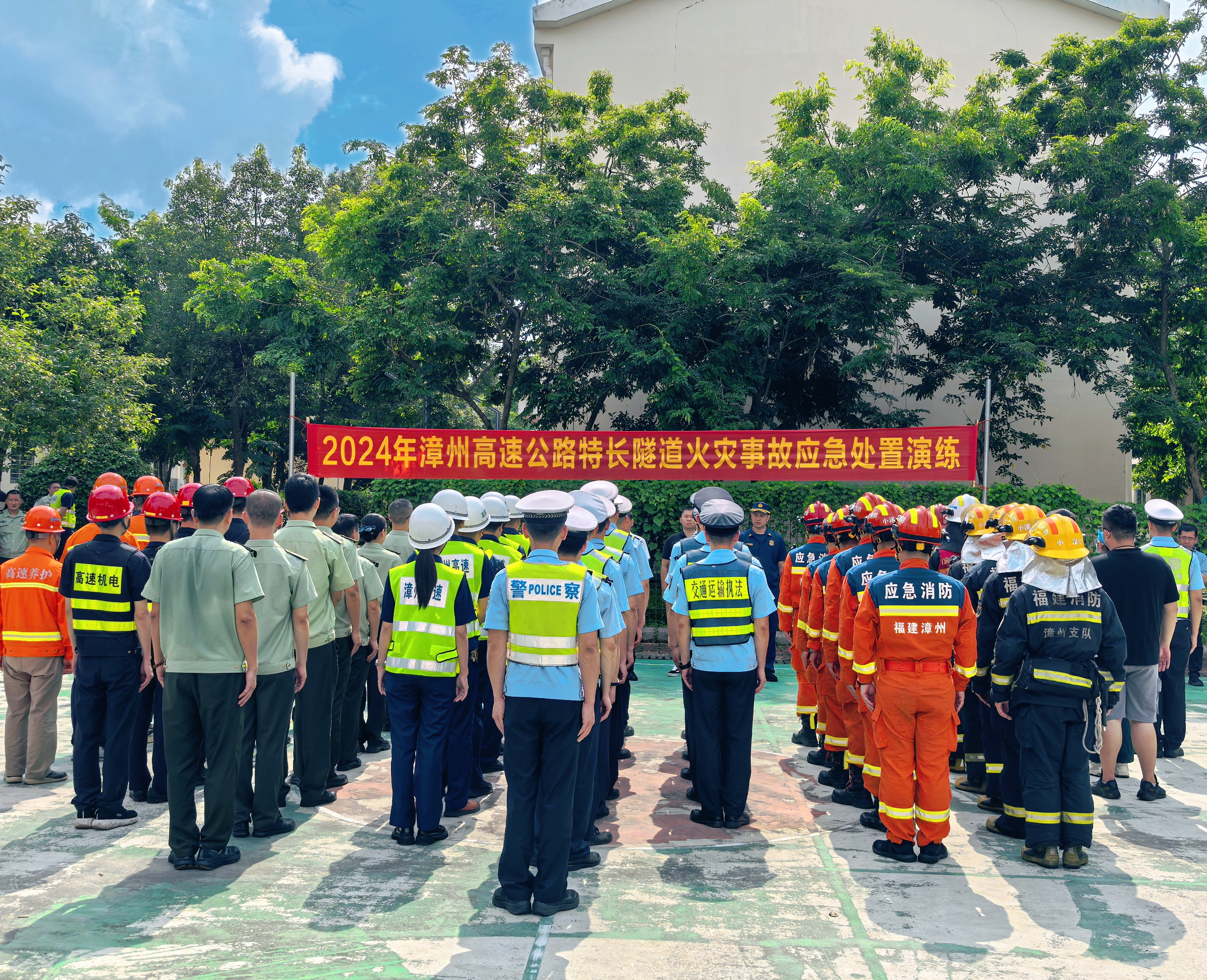 6月13日,福建高速集团漳州管理分公司、福建省公安厅交警总队漳州高速公路支队、福建省漳州高速公路行政执法支队、漳州市消防救援支队、平和县医院以“安全生产月”为契机,在平梅高速路段联建隧道A道(AK6+850M)联合开展2024年漳州高速公路特长隧道火灾事故应急处置演练。