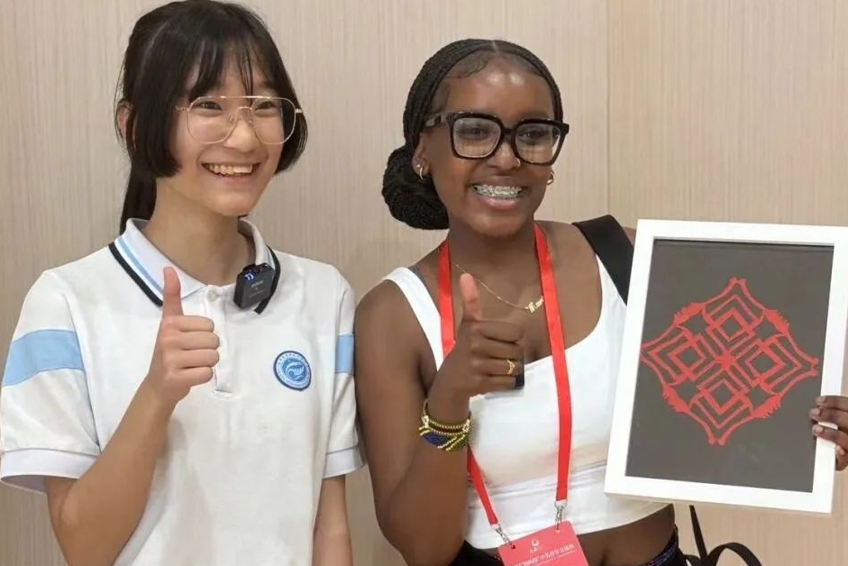 体验剪纸、书法时,林肯中学学生亚瑟·布鲁斯特(Asher Josiah Brewster)始终保持着微笑,这是她首次来到福州教院附中。“今天学习收获了很多,也认识了一些好朋友,对中文印象深刻。”在校学生志愿者的示范指导下,她亲手制作了扇子,并写下“福”字,“我的中国小伙伴告诉我,福字代表好运,我要将它带回去!”