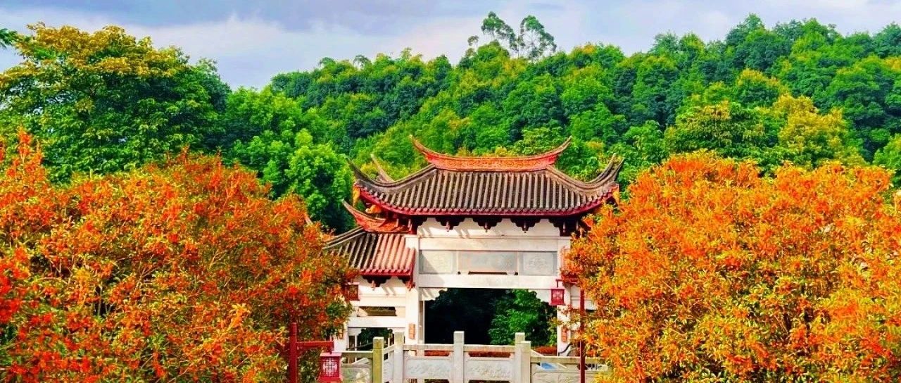 丹桂是常绿灌木或小乔木,花期在9月下旬至11月上旬,这段时期花香最为浓郁,清晨和傍晚是赏桂的最佳时段,阳光斜照,桂香随风飘散,尤为醉人。再往山门走,攀至半山腰的金光禅寺,你还能欣赏到攀上围墙的满目丹桂,一阵风过,一场金色的雨落在草尖,更落在秋之静美的思绪中。