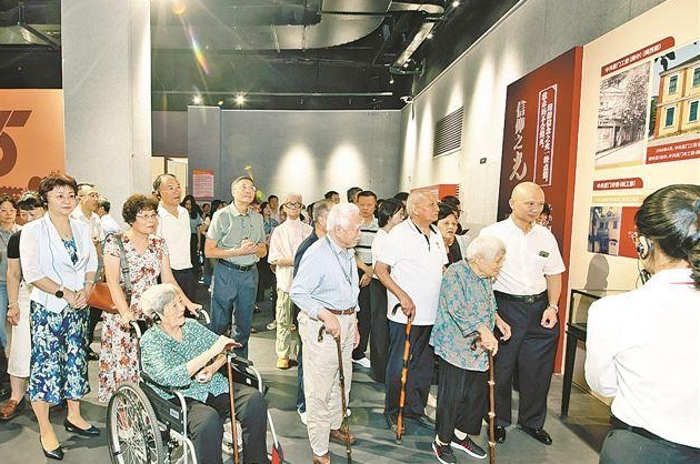 “初心如炬 红耀征程 厦门离休干部红色档案展”昨日在厦门老年大学开展,嘉宾们参观展览。(孙二伟 摄)