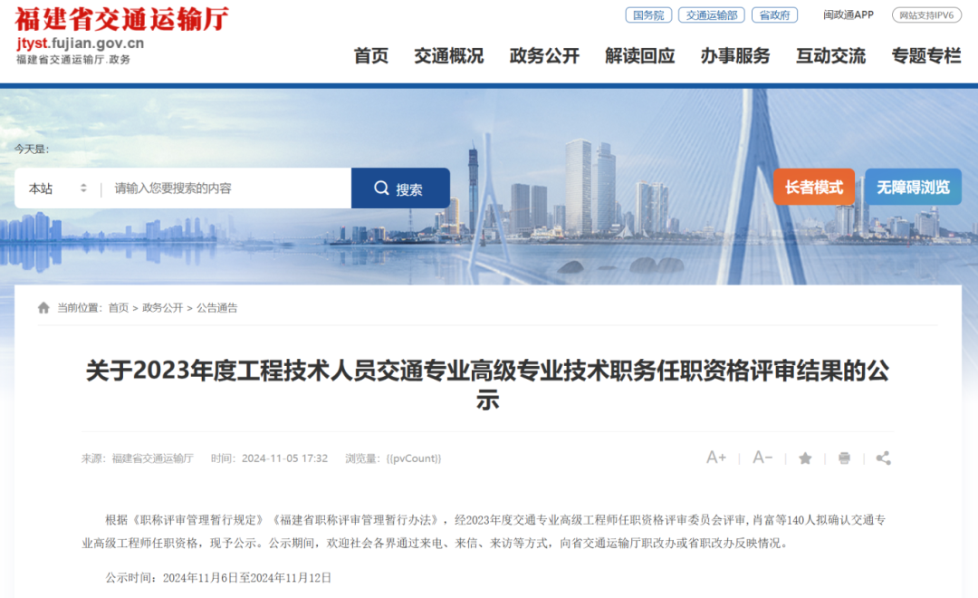 福建省交通运输厅发布