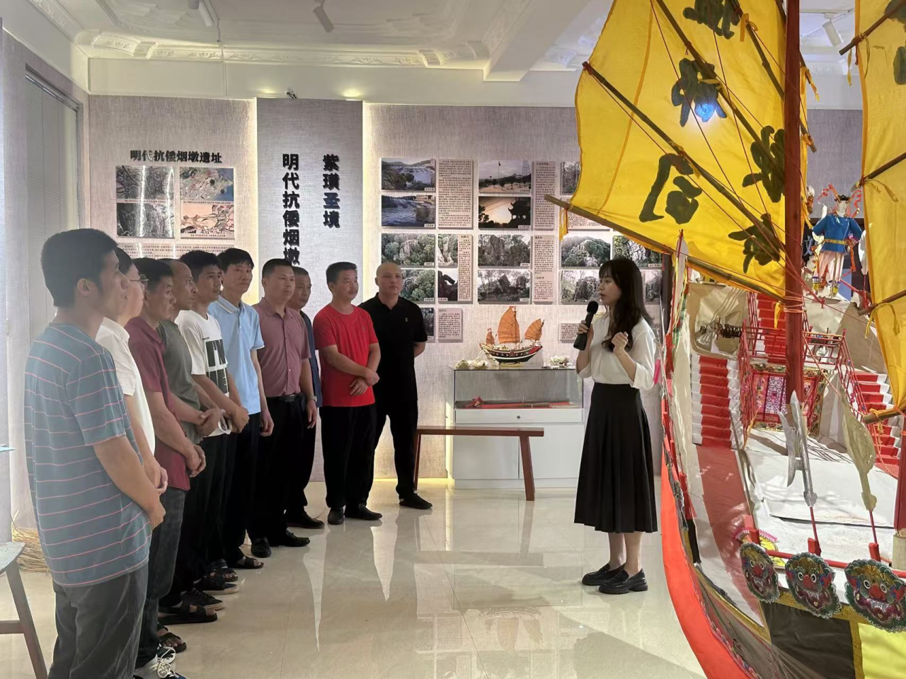 其后,众人在讲解员的带领下参观了东进村非遗文化展览馆,深入了解了东进村非遗文化的历史、特色及保护情况。该馆于去年10月对外开放,占地面积约300平方米,分为闽台送王船习俗、黄濂起义歌、皂隶舞等10个单元。通过观赏丰富的展品和听取翔实的介绍,青年人才们对东进村非遗文化有了更深刻的认识,进一步增强了文化自信。