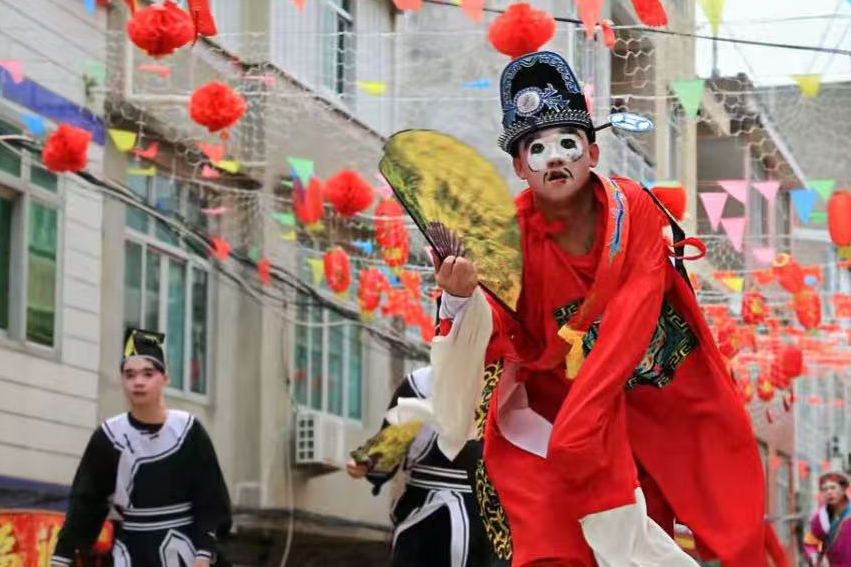 福建日报·新福建客户端 11月17日讯(记者 陈汉儿 通讯员 陈馨 陈睿佳)千人出游,万人空巷。近日,在荔城区黄石镇东山村举办的宫庙布福巡游踩街活动上,一支高跷队十分惹人注目,演员们踩着高跷,在大小街道如履平地,还不时随着锣鼓声跳跃、摇摆,甚至将高跷单腿翘起,悬在空中,展现卓越的平衡技巧。只见他们身穿色彩鲜艳的戏服,面上是浓墨重彩的脸谱,俯仰之间尽显人物特色,一路引得观众激情喝彩。