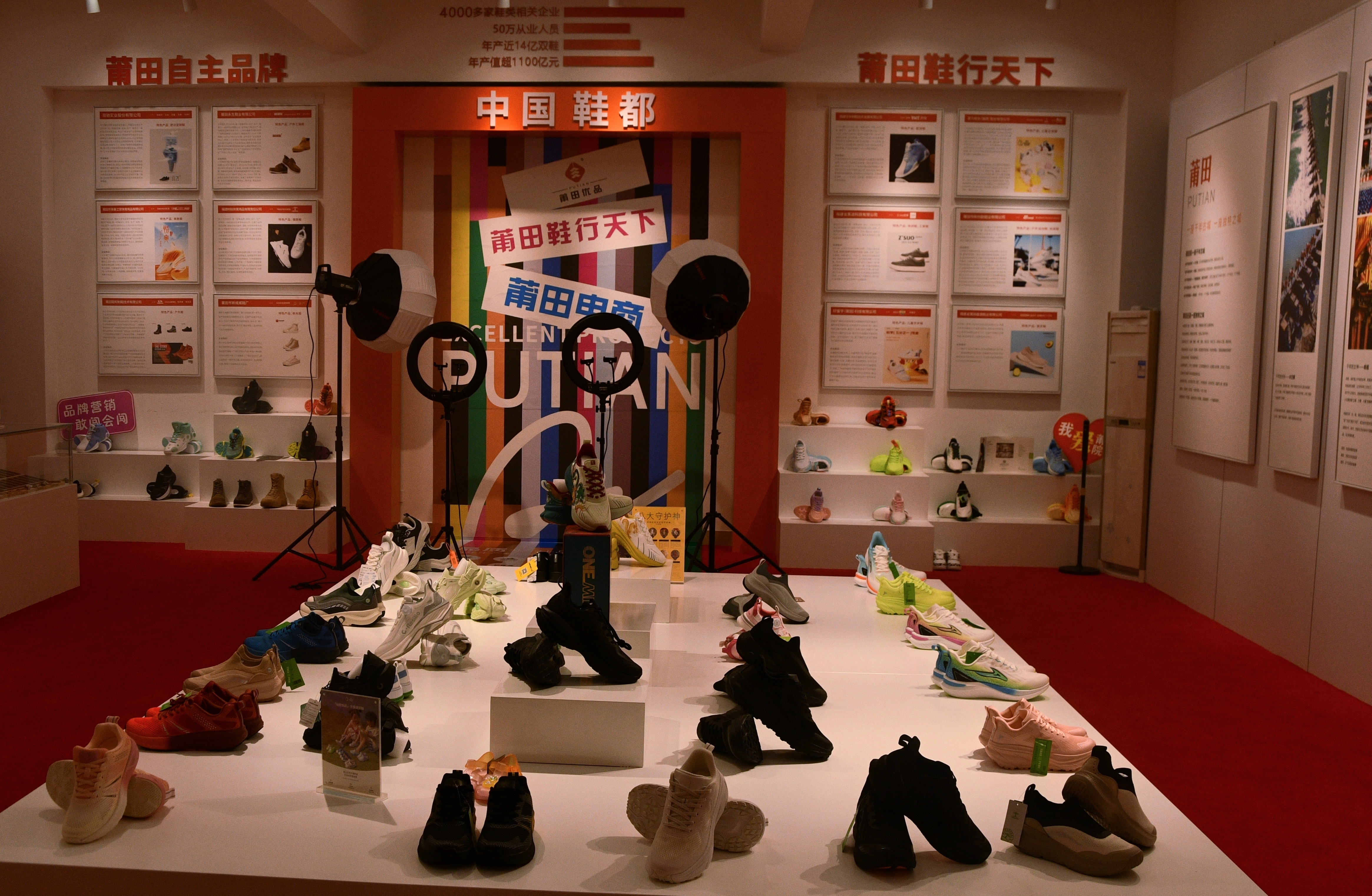 新电商现代产业学院设有莆田优品展厅和电商运营实践中心两大核心教学基地。展厅于5月正式开放,展示莆田自主品牌鞋、四大名果、特色珠宝等多个品类。展厅内配备专业直播设备,以“中国鞋都”字样为背景,主要推销本地品牌鞋。