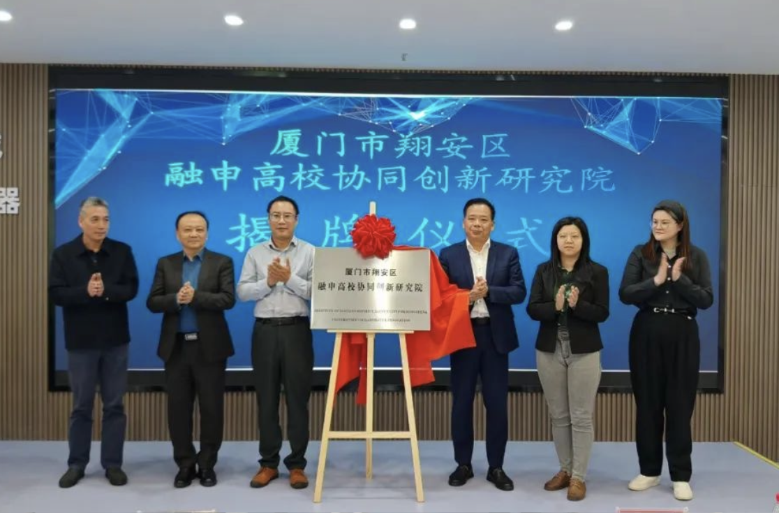 厦门市科学技术局党组成员张亮亮,翔安南部片区工作组组长余世恩,翔安南部片区开发建设指挥部产业招商部副部长林惠敏到场参会,并与融申研究院理事长倪争技、院长刘意君以及上海海大资产经营有限公司总经理徐允连共同揭牌,研究院将整合高校科创资源,为企业提供精准的技术支持,构建校企协同创新的合作平台。