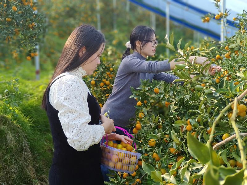 游客体验金柑采摘。