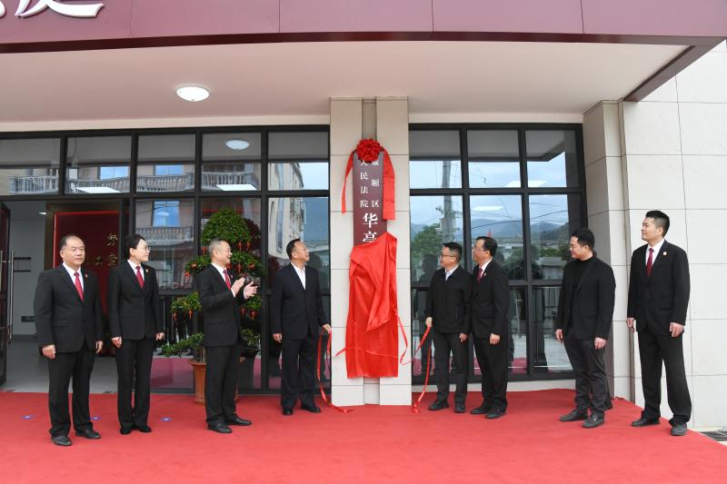 仪式上,谢志洪、于迎伟共同为华亭人民法庭揭牌。