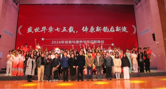 12月18日晚,三明学院艺术楼演艺厅内华灯璀璨、热闹非凡,一场以“盛世华章七五载,体康新韵启新途” 为主题的迎新晚会在此盛大举行。此次晚会不仅是对建国七十五周年的深情礼赞,更是欢迎2024级新同学、迎接2025年新年的欢乐盛会,同时也是三明学院体育与康养学院践行 “五育并举”中“美育”理念的重要展示平台。