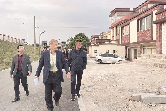 颜厝镇党委书记林智全(中)到龙江岁月二期项目现场办公解决难题