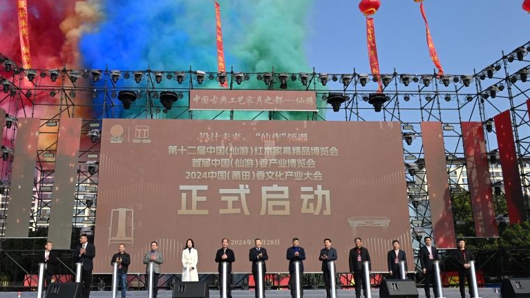 福建日报·新福建客户端 12月28日讯(记者 林爱玲)艺都仙游,红木飘香。28日上午,第十二届中国(仙游)红木家具精品博览会、首届中国(仙游)香产业博览会、2024中国(莆田)香文化产业大会,在“世界中式古典家具之都”仙游县开幕。
