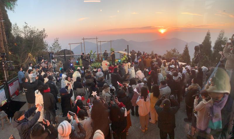 活动现场,不少游客驻足醉风园木栈道上,举起相机与日出美景、群山风光合影留念。“本次音乐会,除了打造日出音乐主舞台和多个艺术装置打卡点供游客拍照打卡,我们还考虑到山顶海拔高、气温偏低,为游客供应姜茶、早餐等,希望大家真正看得暖心、听得开心、玩得舒心”主办方负责人介绍。