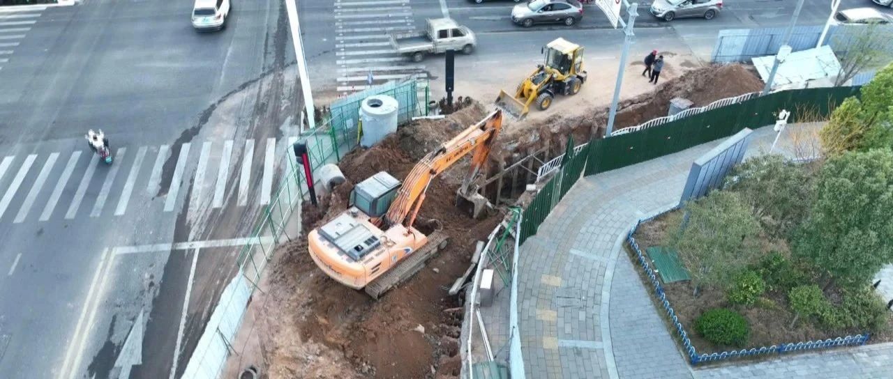 走进项目施工现场,只见大型挖掘机伸展着机械臂,在地面上挖掘沟渠,为铺设新的污水管道开辟通道。