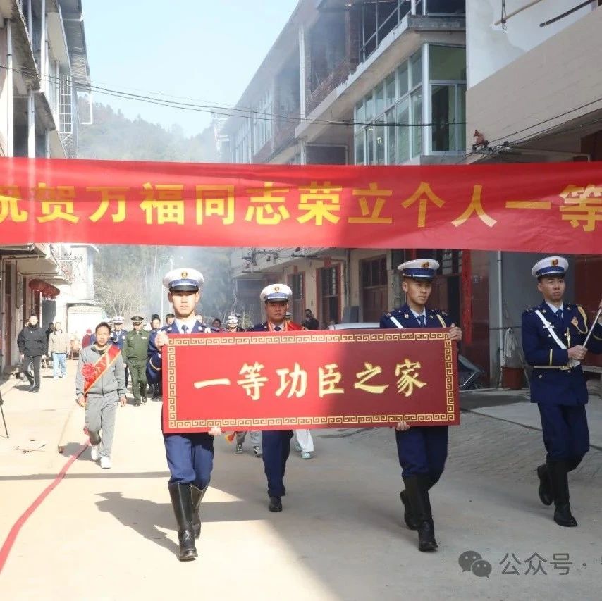 “万福好样的!你是我们的骄傲!”得知万福荣立个人一等功,街坊邻居纷纷前来道贺,现场唢呐声、鞭炮声交织,热闹非凡。在众人的见证下,“送奖到家报喜团”将金灿灿的“一等功臣之家”牌匾送到万福同志的家中