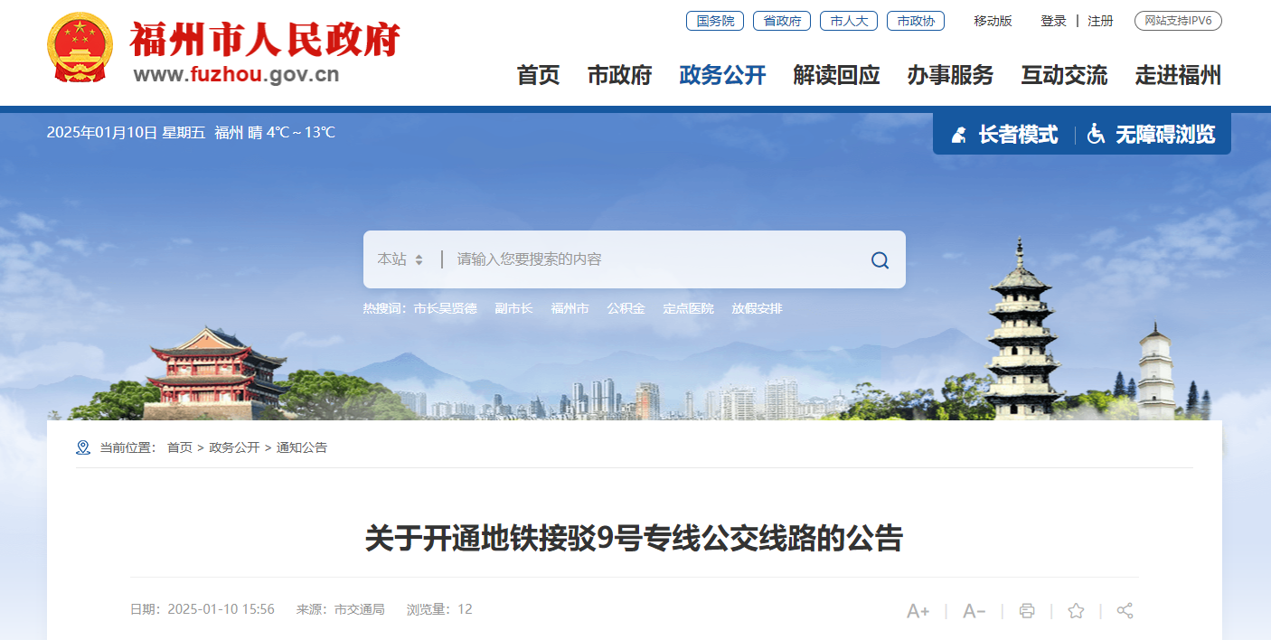 最新!福州道路运输事业发展中心发布公告,开通地铁接驳9号专线公交线路,变更90路、337路公交线路。一起来看详情——