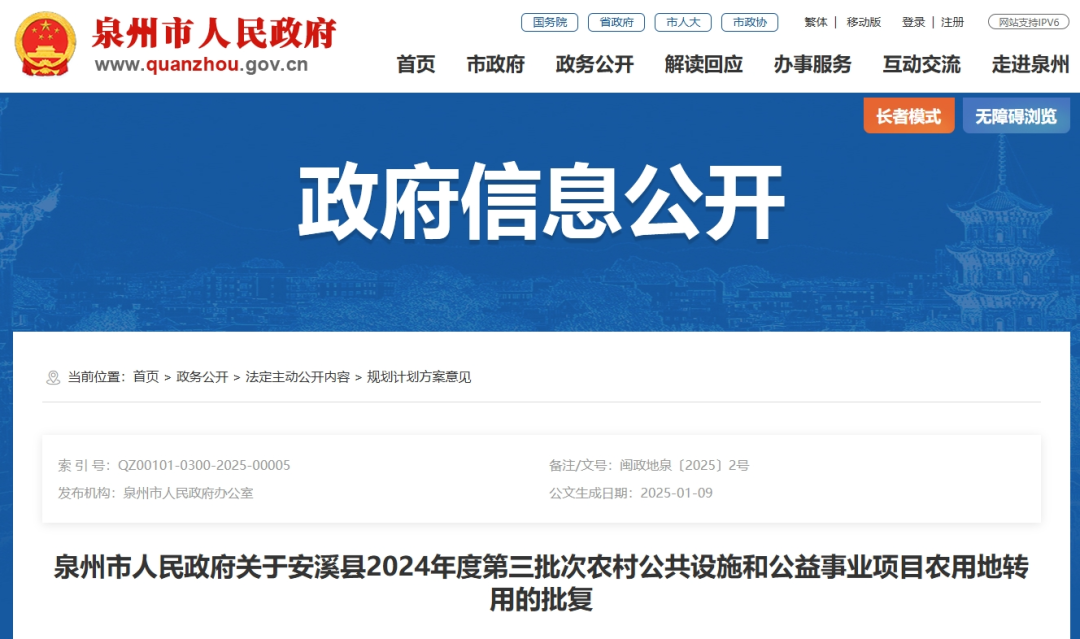 市政府最新批复!事关泉州一地农用地转用