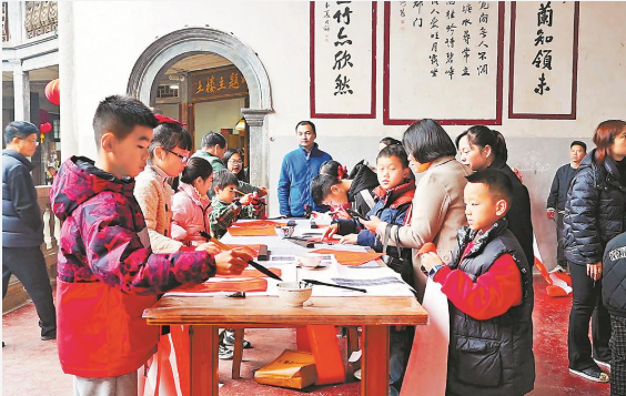 “过年了,我们带着娃娃来这里写春联,给孩子讲解土楼楹联的深刻内涵,让孩子在新春佳节牢记爱国、爱家的传统美德,将这份文化瑰宝传承下去。”市民江梦说。