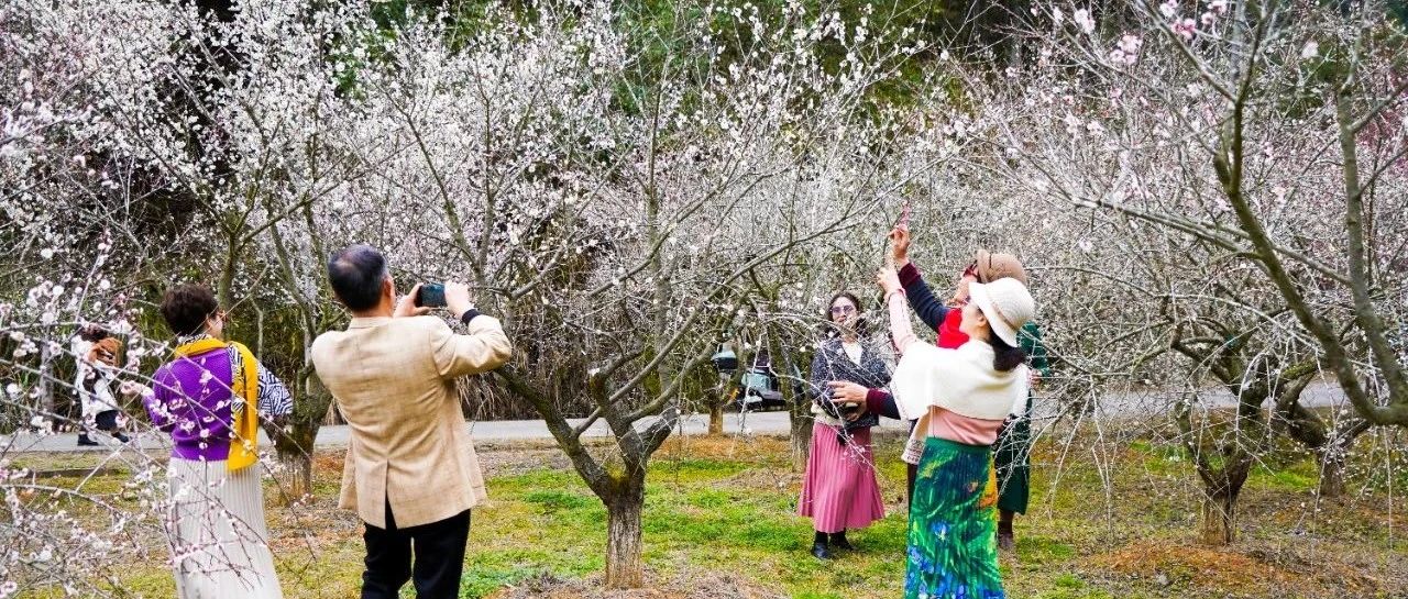 眼下,梅花谷165亩5200多株梅花竞相开放,姹紫嫣红,呈现出一派春意盎然的景象。