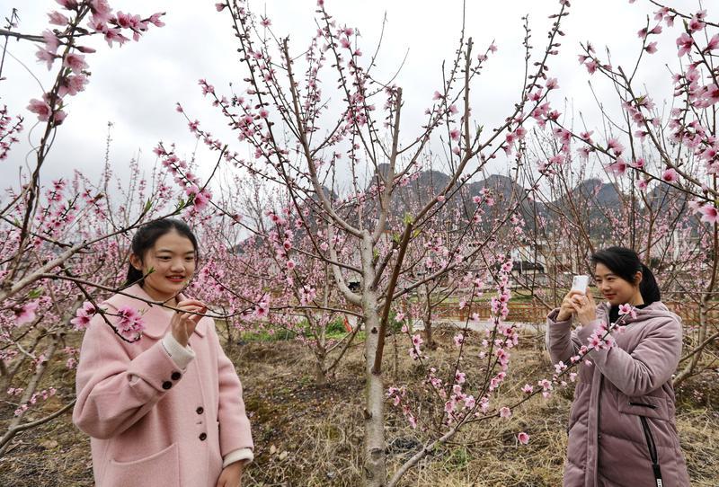 2月24日,省级乡村振兴试点村连城县揭乐乡吕屋村,不少市民在繁花盛开的千株桃林间赏花、游玩。