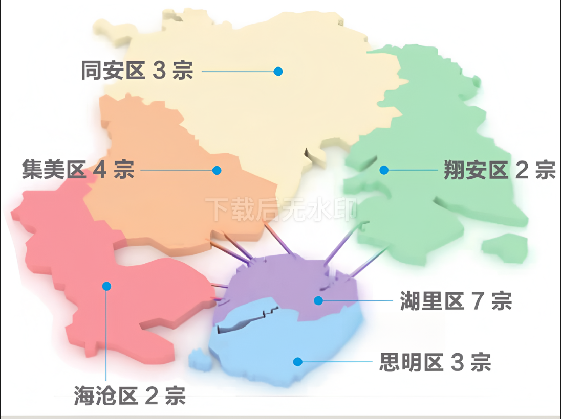 在今年全市计划供应的32宗住宅用地中,商品住宅用地共有21宗,其中思明区3宗、湖里区7宗、海沧区2宗、集美区4宗、同安区3宗、翔安区2宗。
