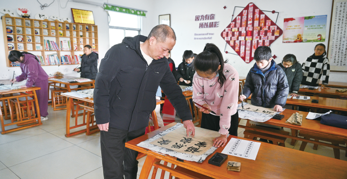 上攀学堂成立以来,实验区文联组织文艺家义务为农村儿童进行书法、剪纸、音乐等艺术课程培训,丰富农村儿童课余精神文化生活,书法课尤其受欢迎。从基础笔画、握笔姿势到书法理论知识,书法家们细心的教导让孩子们感受到了书法魅力。
