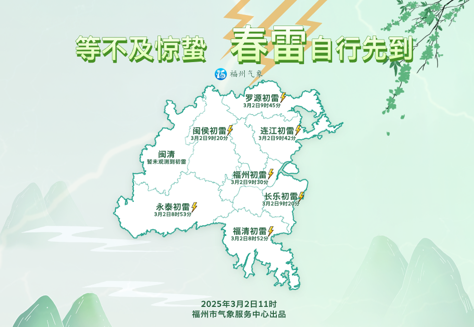 轰隆! 今天 9:30分福州主城区2025年蛇年第一声春雷打响。春姑娘踩着惊雷正式上线!这声“天气闹钟”宣告着福州正式进入强对流高发季,未来一周冷暖空气持续“抢地盘”,雷阵雨、回南天、10℃气温过山车将轮番登场,快备好除湿盒和晴雨伞,和湿漉漉的春天交手吧!
