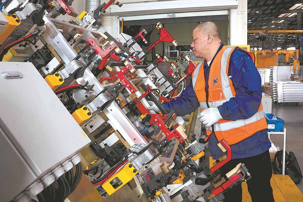 近日,宁德市东侨经济技术开发区一家新能源科技企业生产车间内,工人正紧张赶制新能源汽车动力电池壳产品。王旺旺 摄
