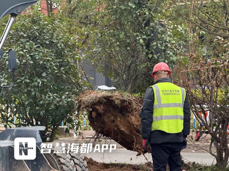 施工现场机器轰鸣,工作人员正在操作挖掘机,进行树木移植、道路开挖整平作业。据了解,目前,永泰润诚物流园与三环西路(商贸物流园段)衔接出入口有两处,第一出入口内部道路在右转弯处存在道路净高不足、转弯处道路宽度较窄、转弯半径小等问题,难以满足园区内大型货车的通行需求,且有一定的安全隐患;第二出入口车辆离开物流园前往永泰站、甬莞高速方向,则需向东绕行约5.64公里进行掉头,给出入车辆造成极大不便。