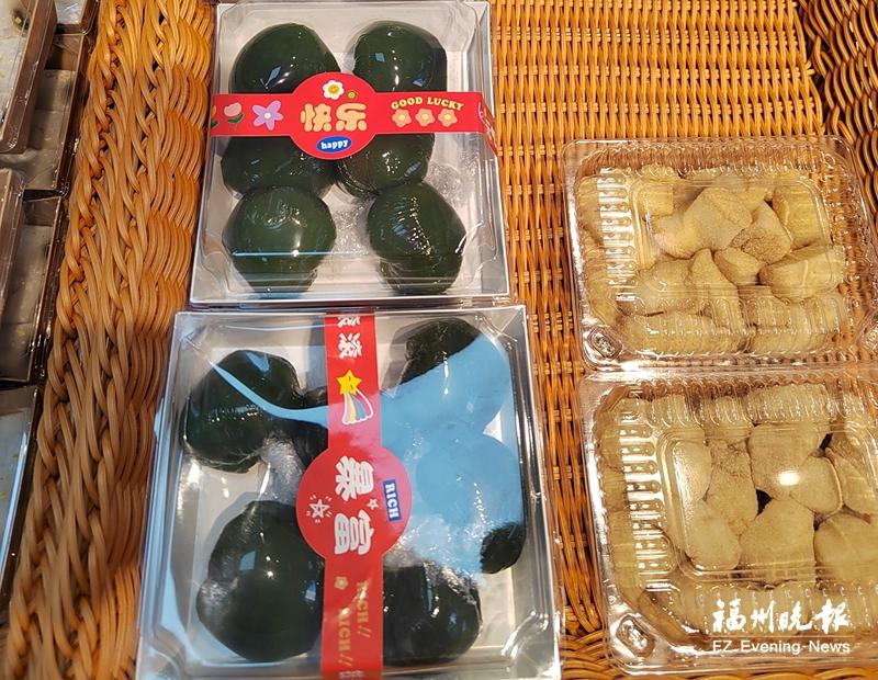 位于仓山区上三路的一家大型商超,更是打造了一个“青团舞台”,各种青团商品在专区集中展示。“作为清明期间的传统食物,青团十分抢手,所以我们设置了专区来促销。”销售人员介绍说,青团在该商超上架不到一周,销量比去年同期增加了30%。