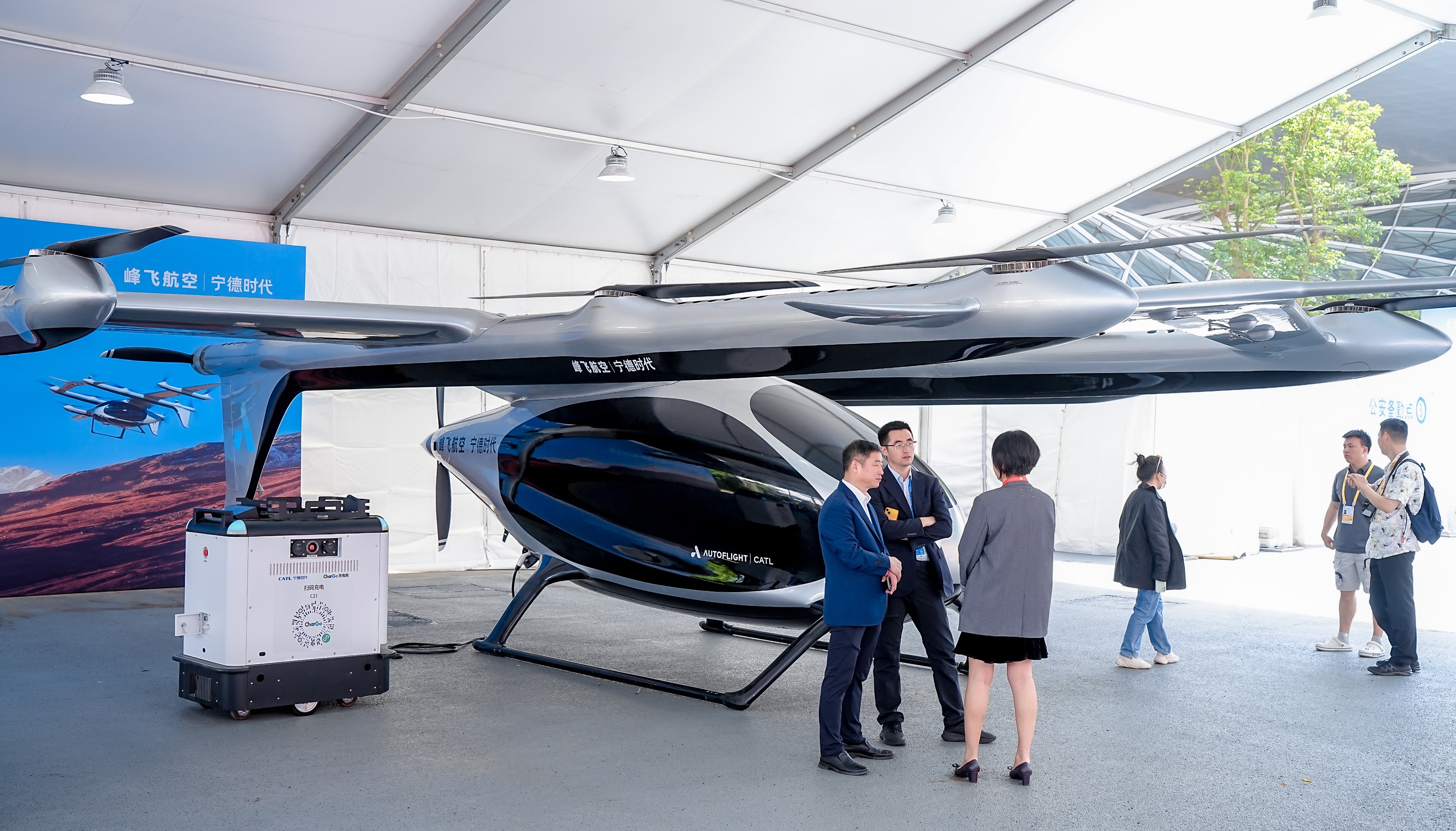 据了解,作为本届消博会主会场单品体积最大展品,该航空器采用纯电动力,搭载宁德时代动力电池。和航空器一起亮相的“宁德智造”还有宁德时代自主研发的储充检一体机器人“CharGo充电狗”,该产品不仅能为新能源汽车提供快捷、安全的移动充电,还能为低空飞行器、机器人等领域提供智能化充电服务。(闽东日报记者 张文奎 摄)