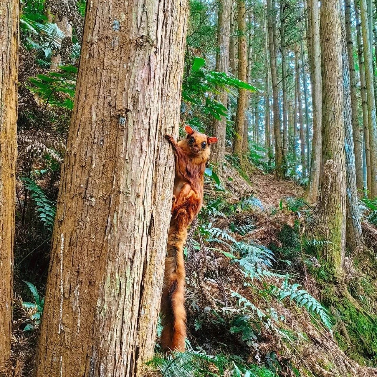 4月16日,在三明市大田县石牌镇一处深山中,发现国家二级保护野生动物——飞狐(鼯鼠)。
