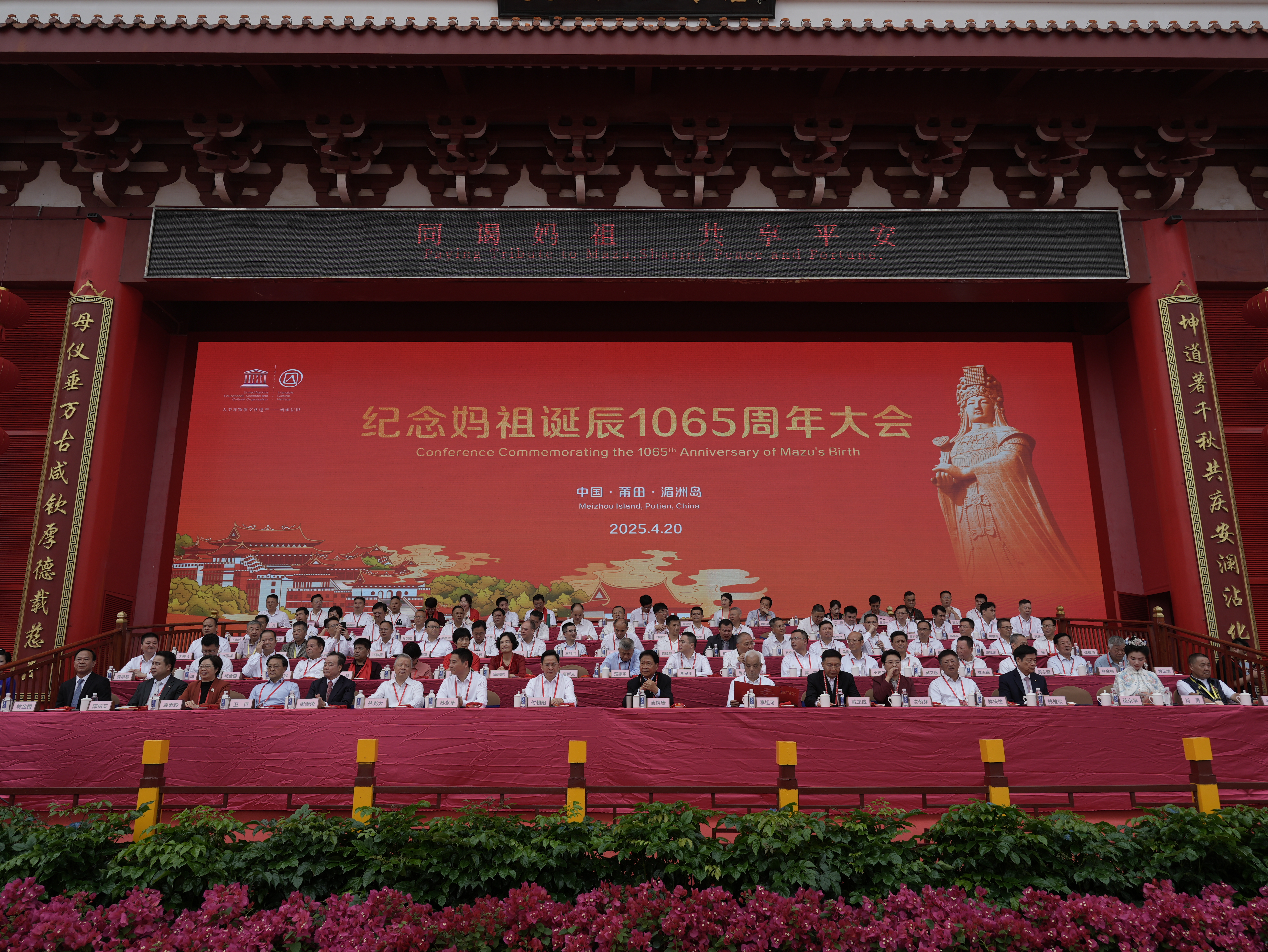 福建日报·新福建客户端 4月20日讯(记者 林剑波 林鹏 通讯员 张丽明 程黎婷 文/图)4月20日,农历三月廿三,纪念妈祖诞辰1065周年大会暨春祭妈祖大典在莆田湄洲妈祖祖庙天后广场举行。海内外妈祖宫庙和妈祖文化团体代表、妈祖敬仰者以及社会各界人士逾万人汇聚湄洲岛,共同弘扬妈祖文化。
