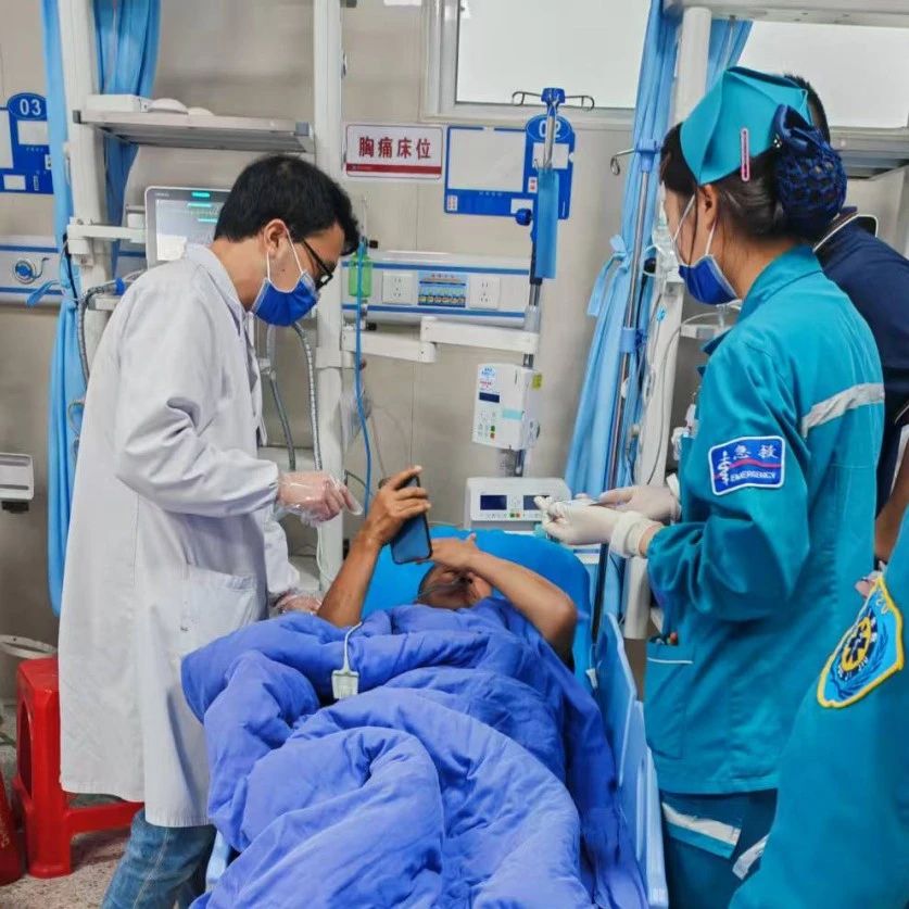120救护车到达现场后,迅速评估患者的生命体征,包括心率、血压、呼吸频率和血氧饱和度等,并建立静脉通路,紧急送往邵武市立医院急诊科抢救室。