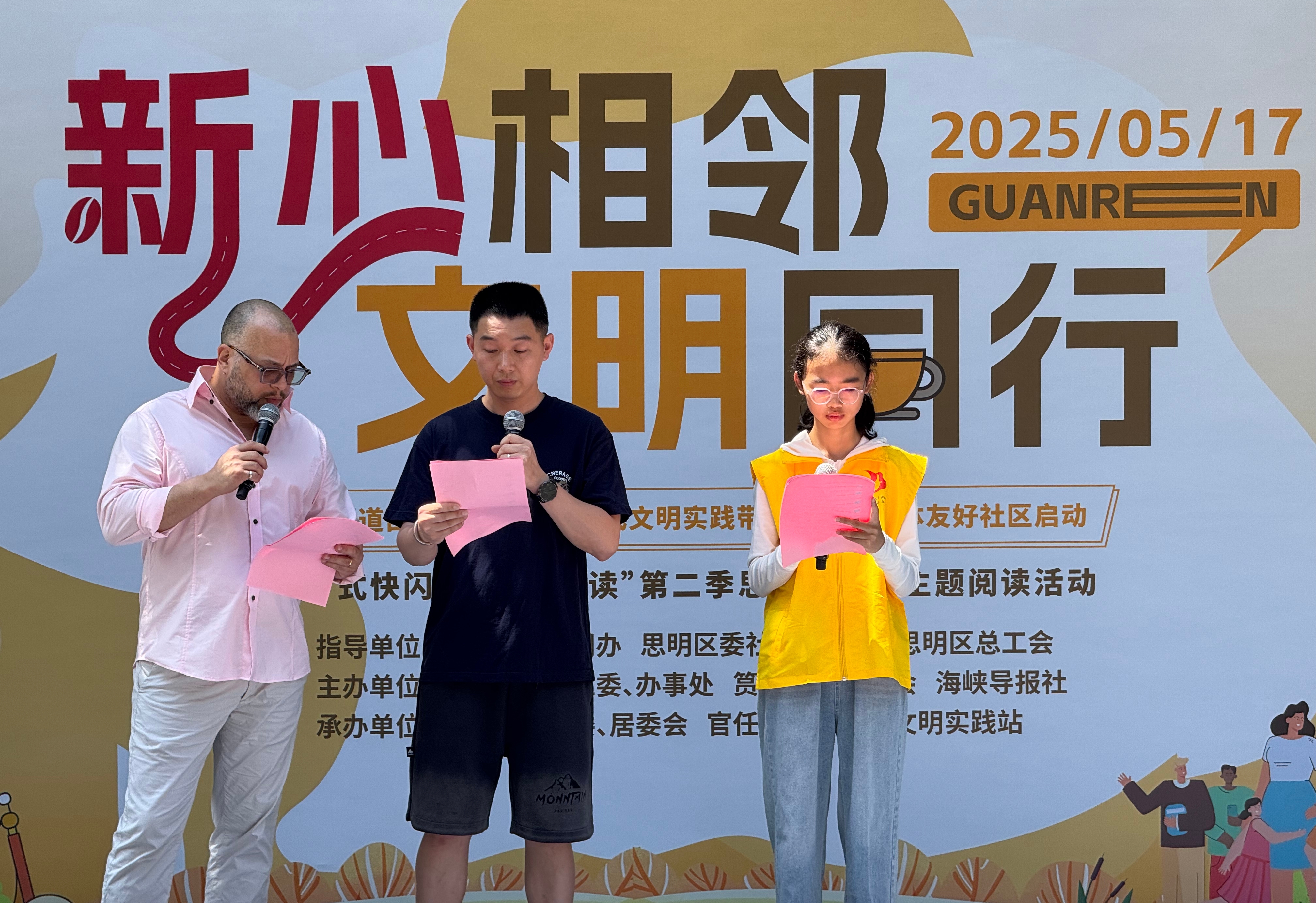 这一幕,出现在5月17日的“新心相邻 文明同行”筼筜街道西堤咖啡街区文明实践带暨新就业群体友好社区、“‘书’式快闪,工享阅读”第二季思明区职工主题阅读活动启动仪式上。这不仅是一份公约,更是一份承诺,一种责任,在咖啡飘香的筼筜湖畔,中外友人共同见证了助力城市文明建设的又一举措。