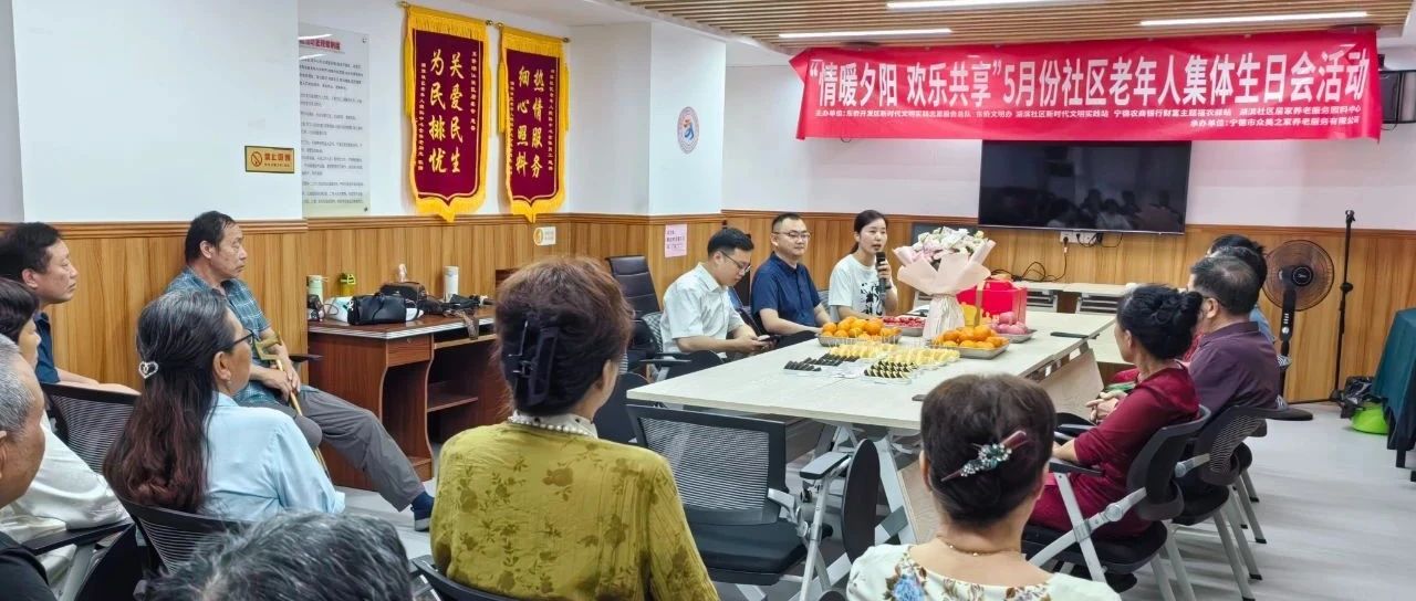 湖滨社区居家养老服务照料中心开放6年多以来,已成为社区老人的第二个家。为进一步营造尊老、敬老、助老的良好氛围,让老年人感受到社区大家庭的温暖和关怀,提升老人们生活归属感和幸福感,5月16日下午,湖滨社区联合共建单位在居家养老服务照料中心多功能活动室,开展“情暖夕阳,欢乐共享”5月份社区老年人集体生日会活动。