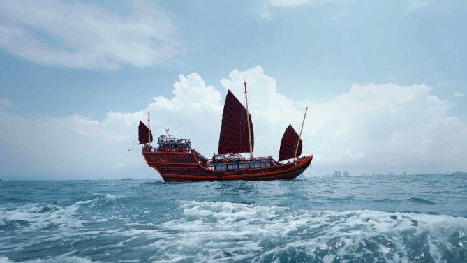 片中,导演巧妙的向观众展示了古今两条航海脉络:一面是郑和船队七下西洋的宏大叙事,另一面是“福宁号”重走海丝的现实航程。
