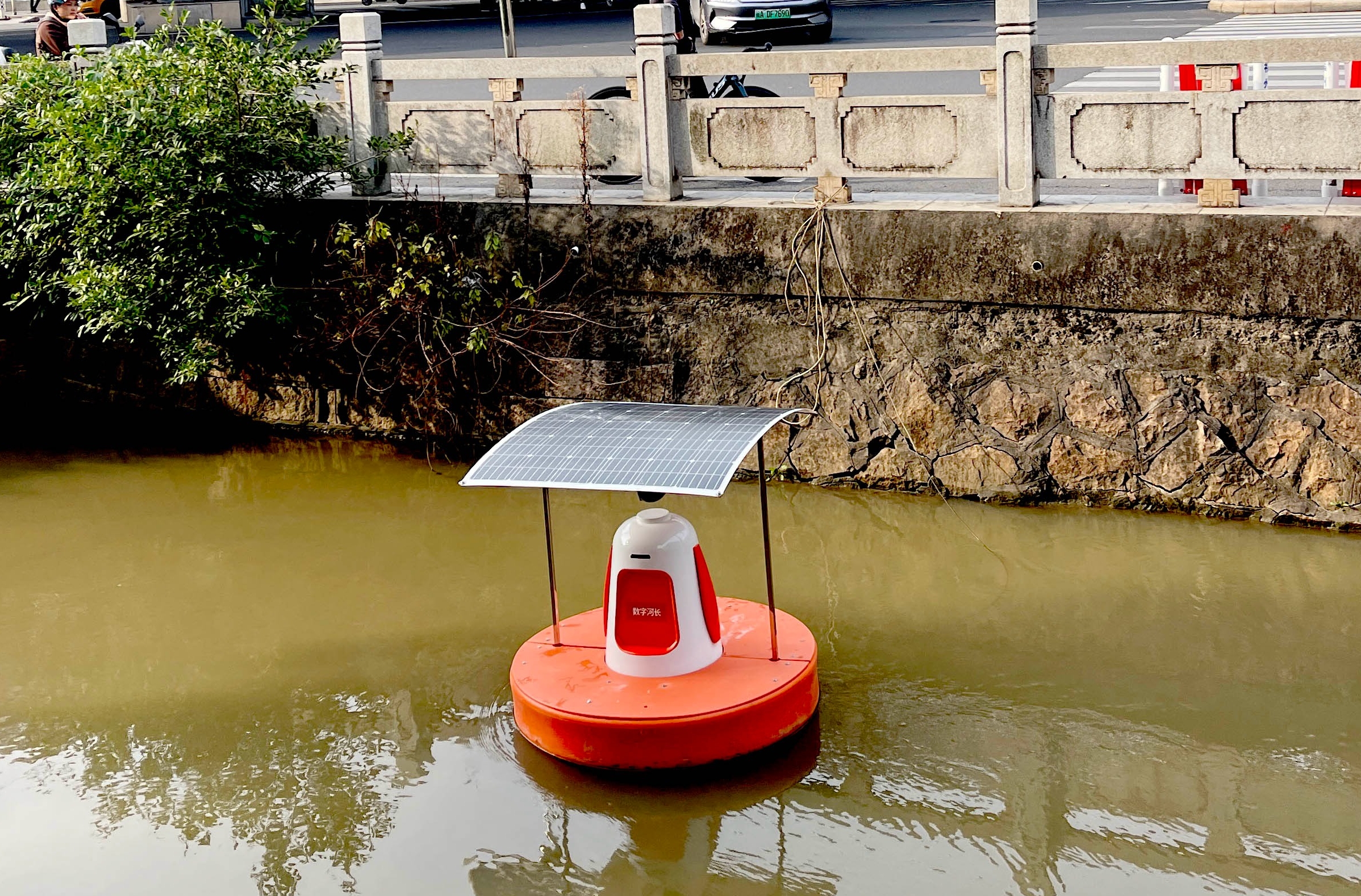 在福州市鼓楼区北二环路与铜盘路交叉口的铜盘河上,一个搭载太阳能板、电子眼和监测设备的橙色浮标静静矗立,引起了周边居民的关注,这是鼓楼区五凤街道推行实施的“数字河长”设备。