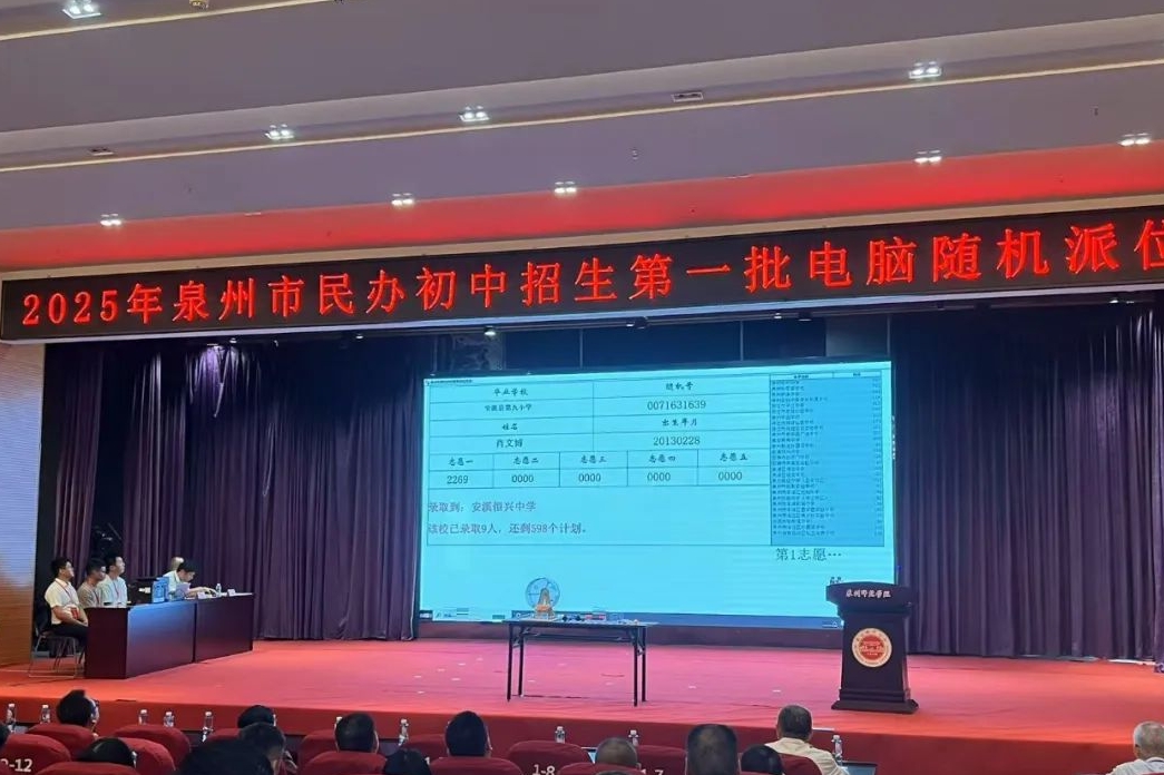 刚刚,备受关注的2025年泉州市民办初中招生第一批电脑随机派位举行。经统计,扣除政策照顾对象和直升人数后,此次电脑随机派位计划数8206人,参与电脑随机派位学生数14490人。派位结果将于今日下午15:30通过泉州市义务教育招生信息管理平台czxt.qzedu.cn发布,学生可根据账号密码目行登录查询,请被民办学校录取的学生,按学校要求报名缴费注册。